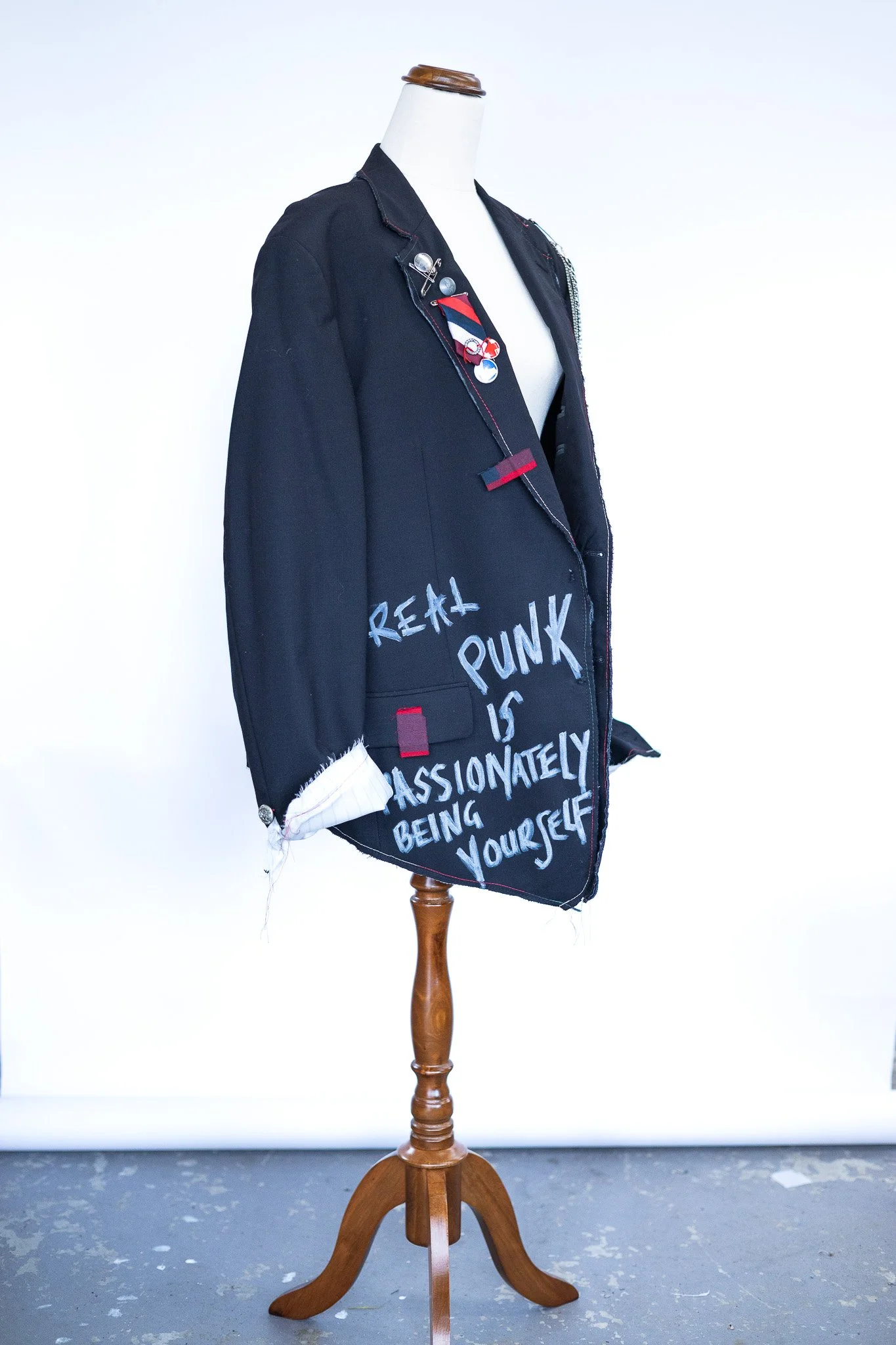 Every jacket is one-of-a-kind — intuitively designed, hand-stitched, and made from thrifted finds. These are talismans, not trends. I introduce my RED THREAD REDUX, reclaimed clothing that’s been given wings.